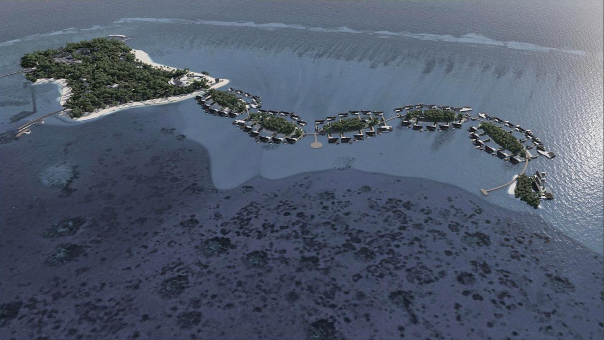 Its landscape has broad lagoon zones which allow for overwater expansions with panoramic views, while the beach line and dense interior foliage create natural divisions for privacy, wellness and family spaces.