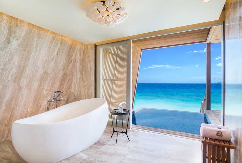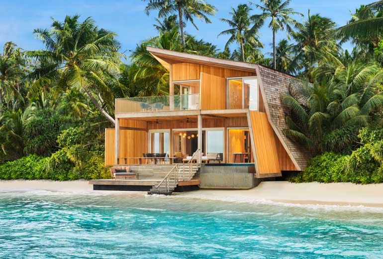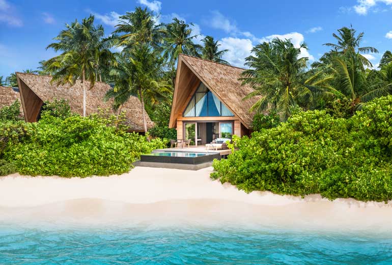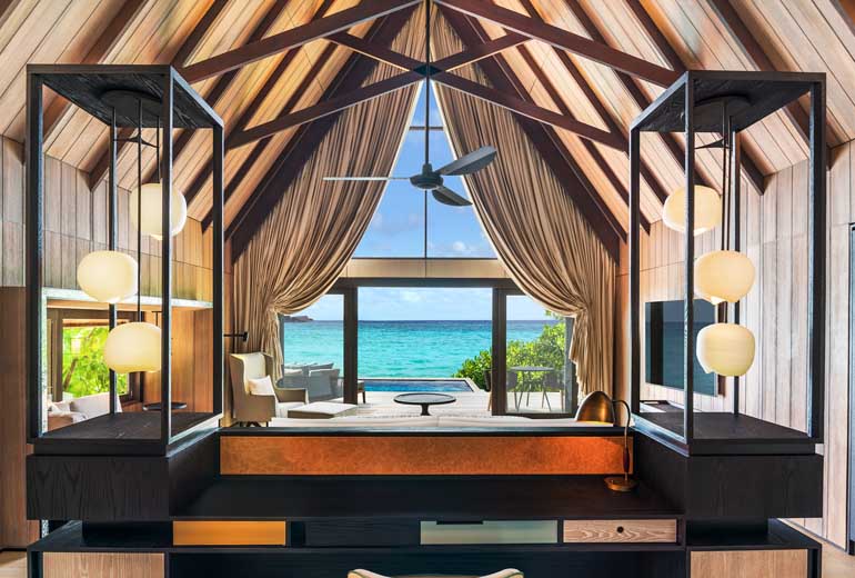 Set on cool coral sand, the villas take cues from an old fisherman’s hut once found on the island. It blends Maldivian heritage with modern beachfront luxury.
